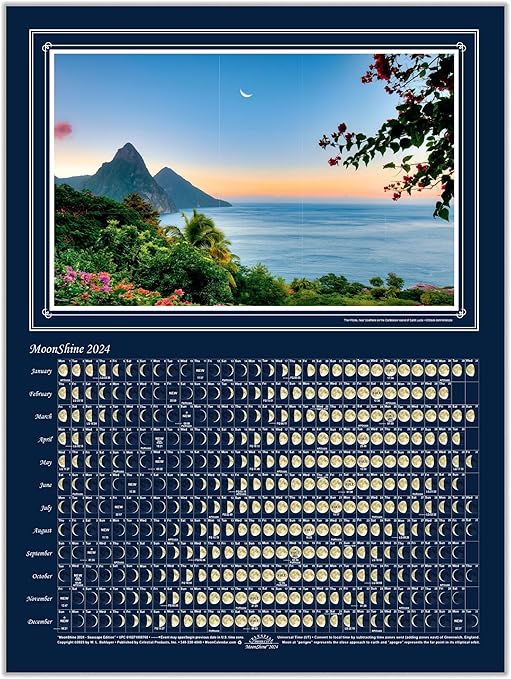 2025 Seascape wall calendar. Choose between seascape and landscape scenes to keep track of the phases of the moon.